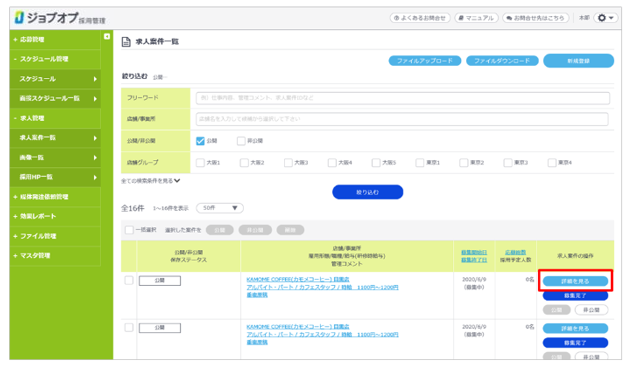 もとになる求人案件の「詳細を見る」をクリックします