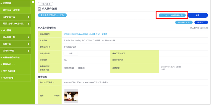流用元の求人案件をもとに、新規求人を作成する